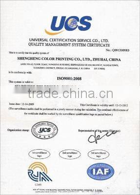 Zhuhai Shengheng Color Printing Co., Ltd was established since 2003. We provide a one-stop-shop service from preparation of product, such as graphic design and edition, to its finalization which covers a wide range of requirements and techniques: hot stamping and emboss, laminating plastic, die cutting and saddle-wire binding. Our company occupies 3,000 square meters and approximate 60 technicians in vary area. We focus on the needs of customers from different spectra in products; our wide range of services includes packing and corrugating boxes, poster and paper bags, product instructions, bulletins, specialized gift cards, labels, hangtag, plastic note stickers, paper lamination, gold and silver stamping and emboss, etc.